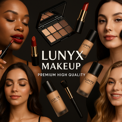SKIN CARE PRODUCTS WITH MY COMPANY NAME (LUNYX) GOLD TEXT